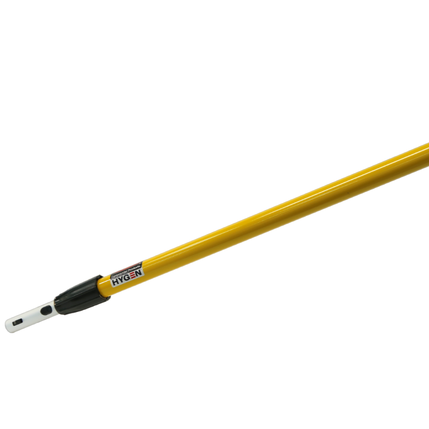 Le manche télescopique HYGEN™ Quick-Connect de Rubbermaid est conçu pour un nettoyage professionnel efficace et ergonomique. Ajustable de 48 à 72 pouces, il permet un changement rapide des accessoires grâce à son système de connexion simple, tout en offrant un confort optimal pendant l’utilisation.